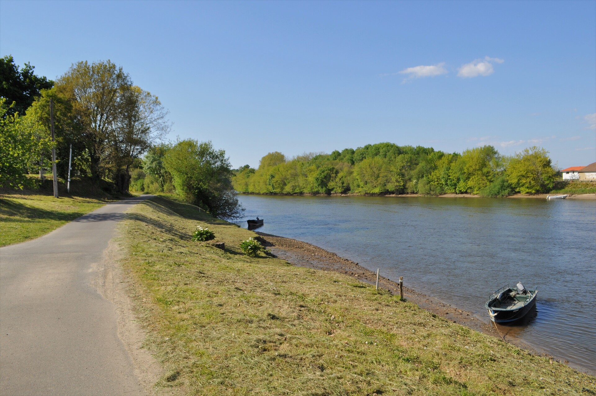 Einige Kilometer geht es am Fluss entlang, ehe ein kurzer, aber sehr steiler Stich nach St. Martin de Hinx hinaufführt. Dort gibt einen kleinen Supermarkt und eine Bar, an der man sich verpflegen kann.
