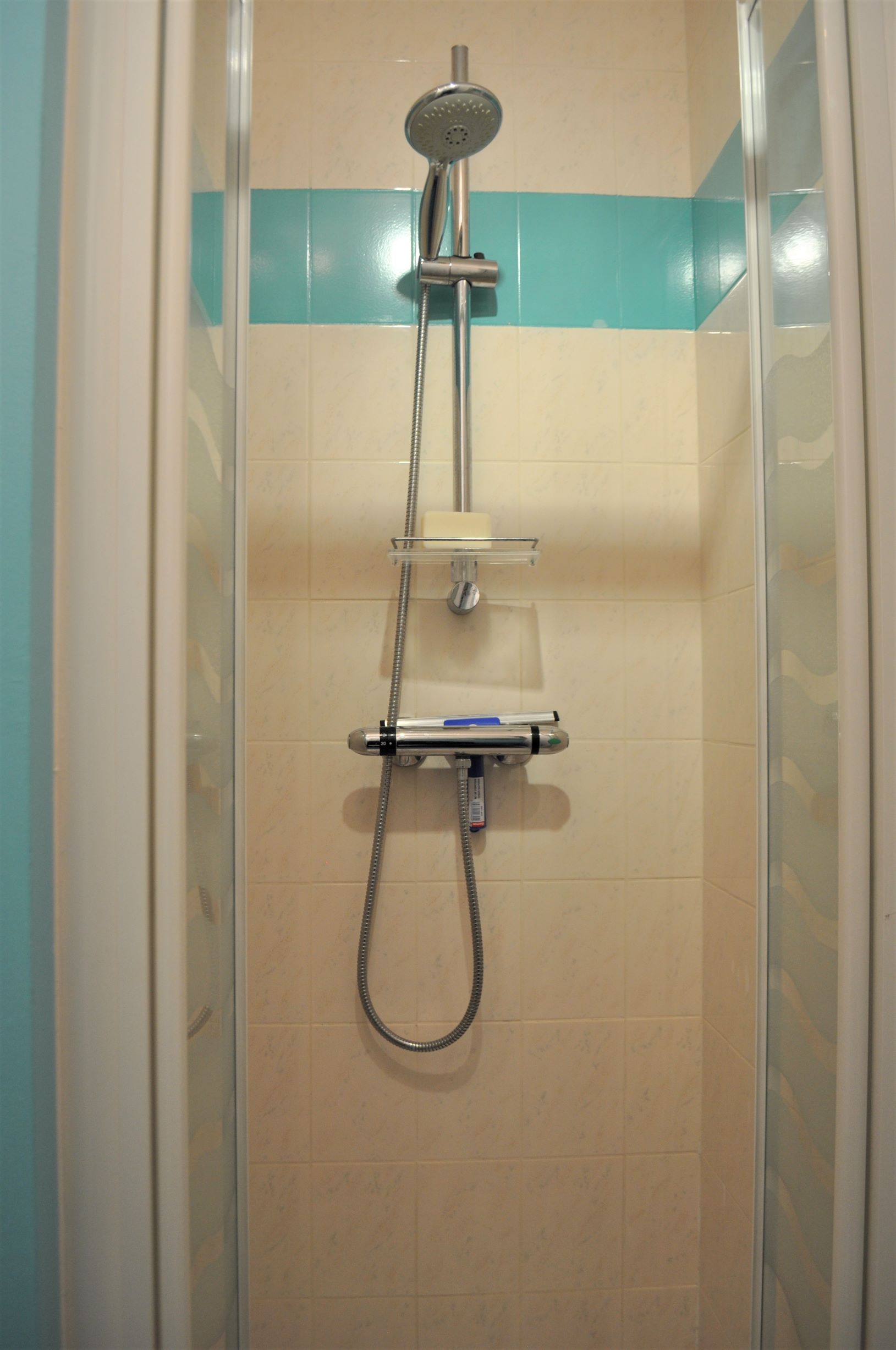 Das Bad ist mit einer Duschkabine, einem Waschbecken, einem elektrischen Handtuchtrockner sowie einem W.C. ausgestattet. Bettwäsche und Handtücher sind im Mietpreis enthalten.
