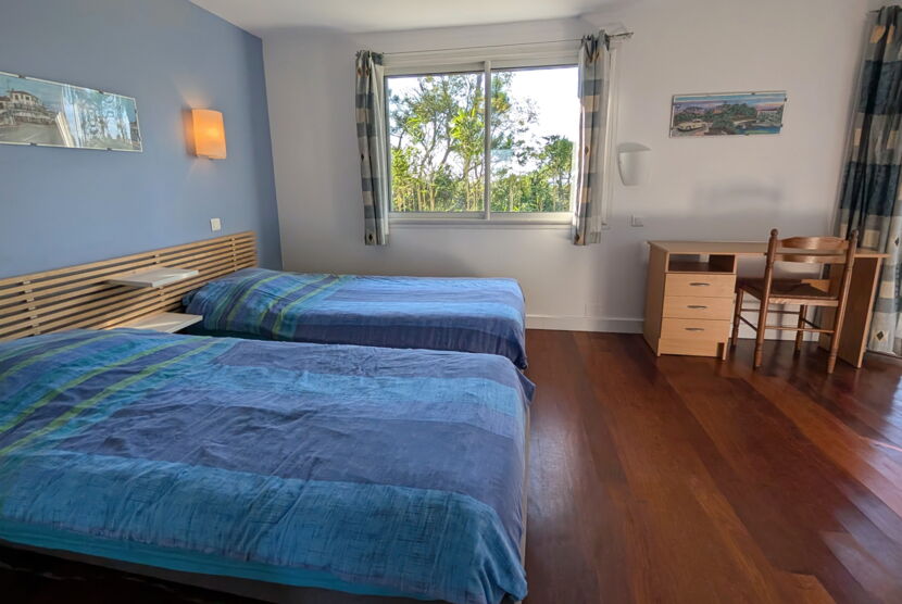 Von den insgesamt vier Schlafzimmern bestehen zwei aus jeweils einem Doppelbett (160 cm und 140 cm breit), die anderen beiden aus jeweils zwei Einzelbetten. Bettwäsche wird gestellt. Zwei Bäder mit Waschbecken, das eine mit Dusche das andere mit Badewanne. Separates W.C.