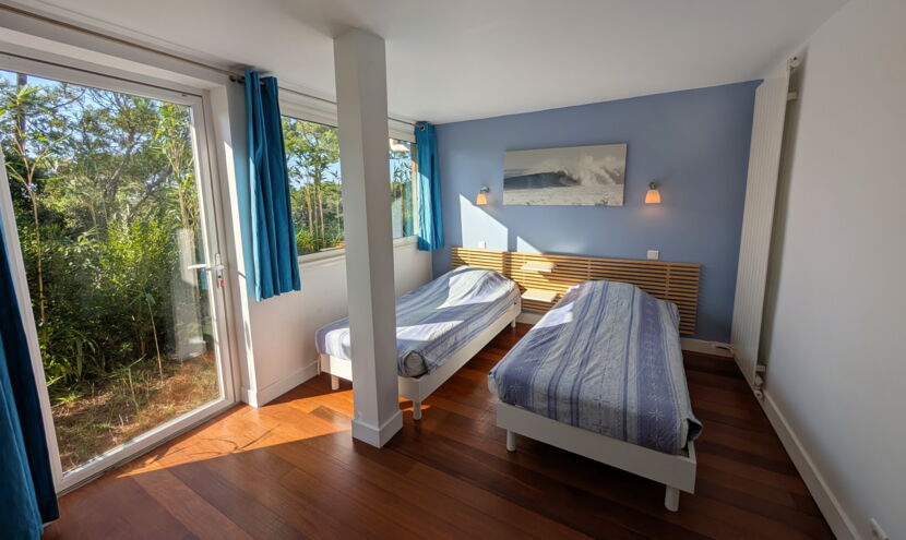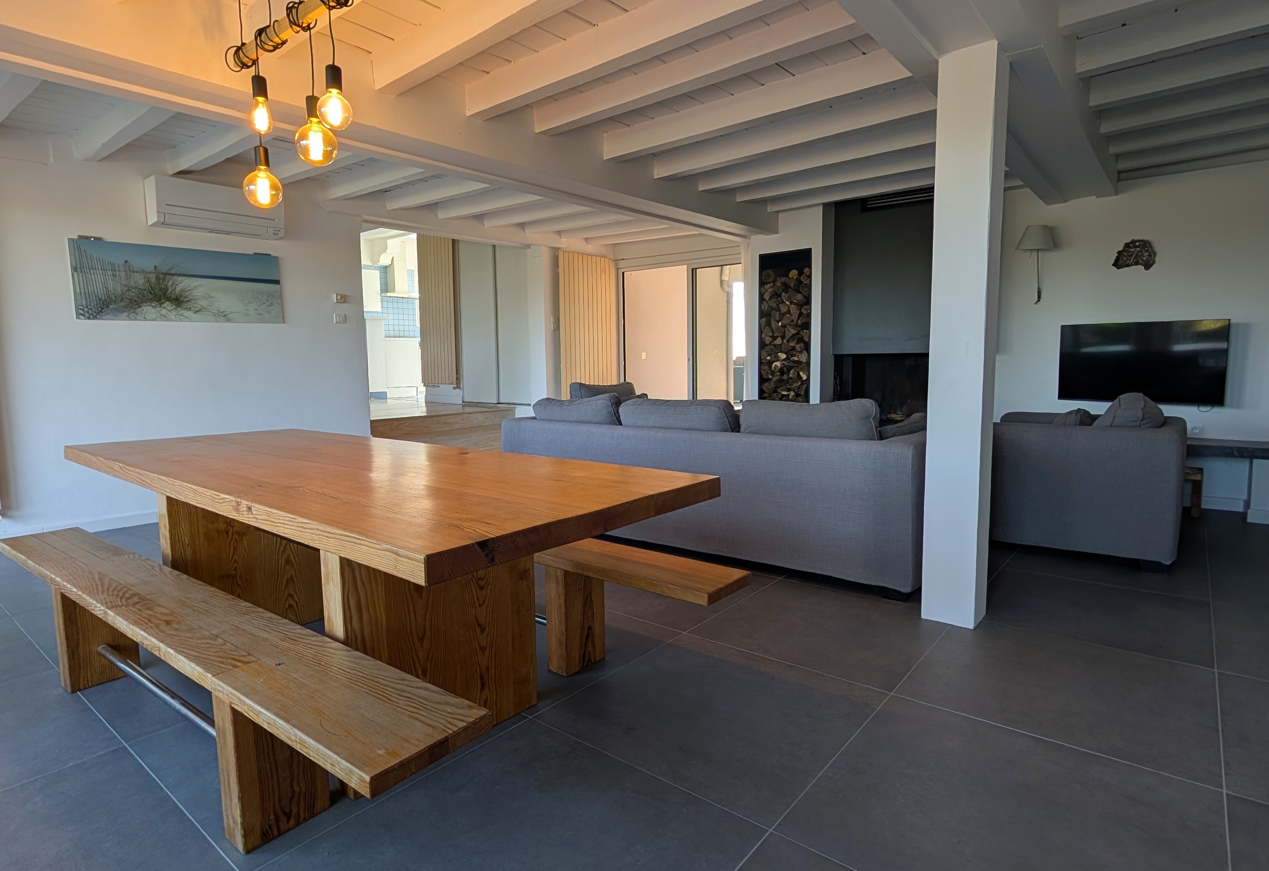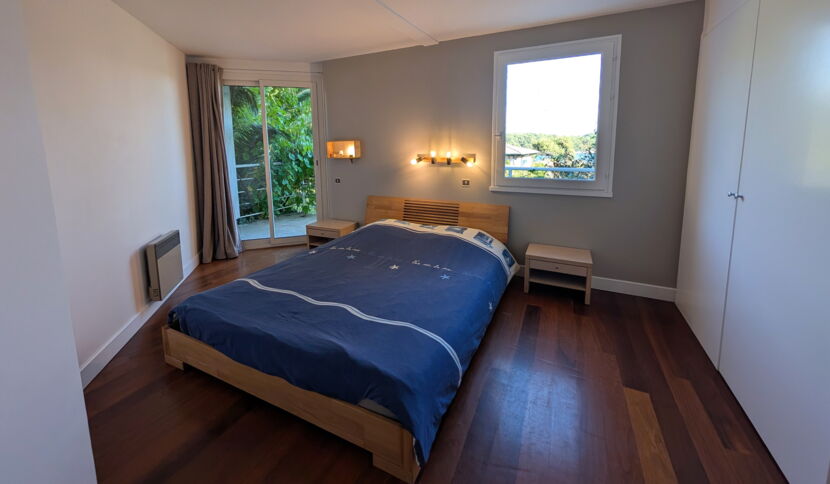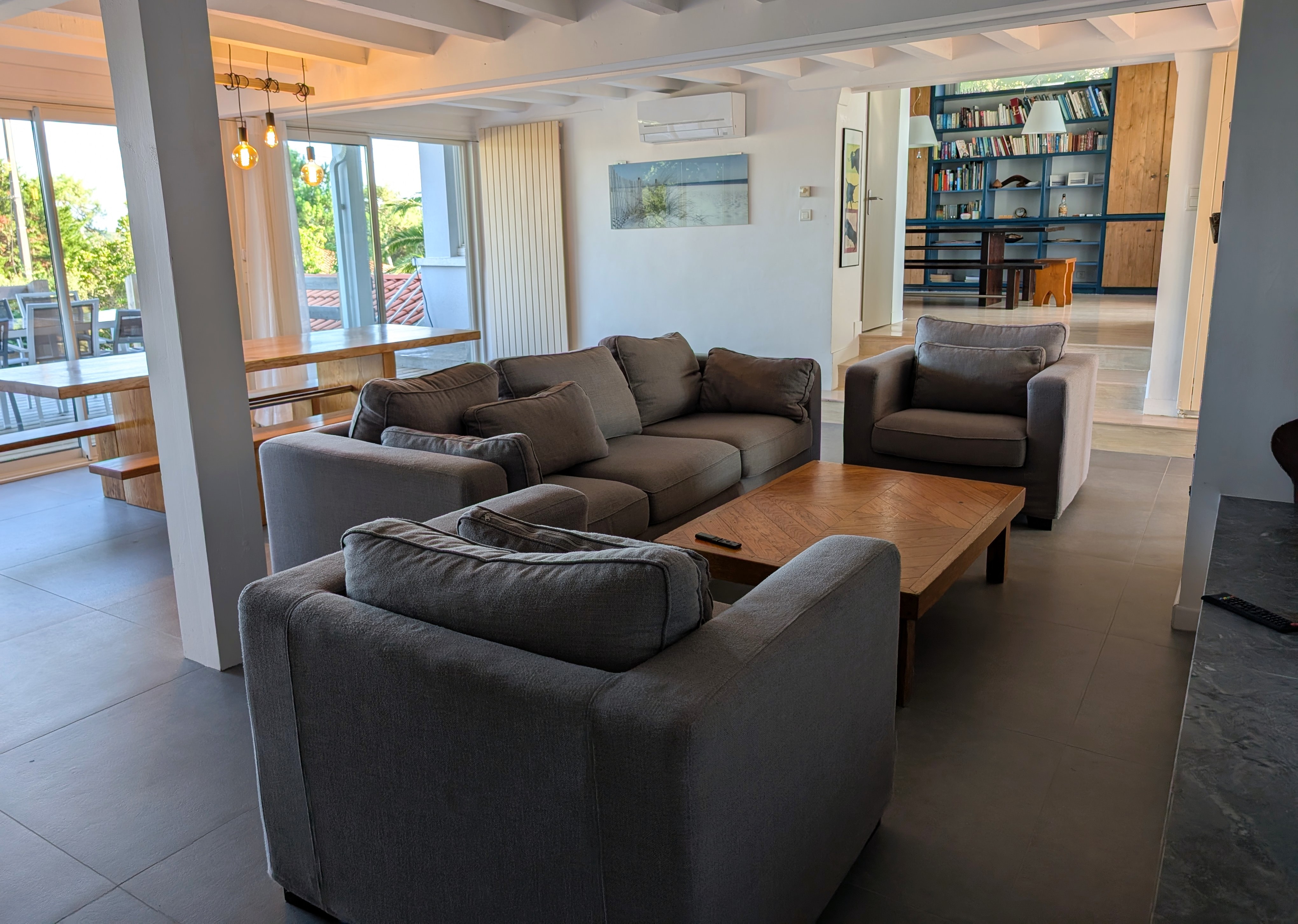 Die besonders großzügige Ferienwohnung H63 mit Meerblick und 150 m2 Wohnfläche befindet sich im Erdgeschoß eines 2-Familien-Hauses, im schönsten Villenviertel von Hossegor in optimaler Lage, nämlich genau zwischen See und Meer.