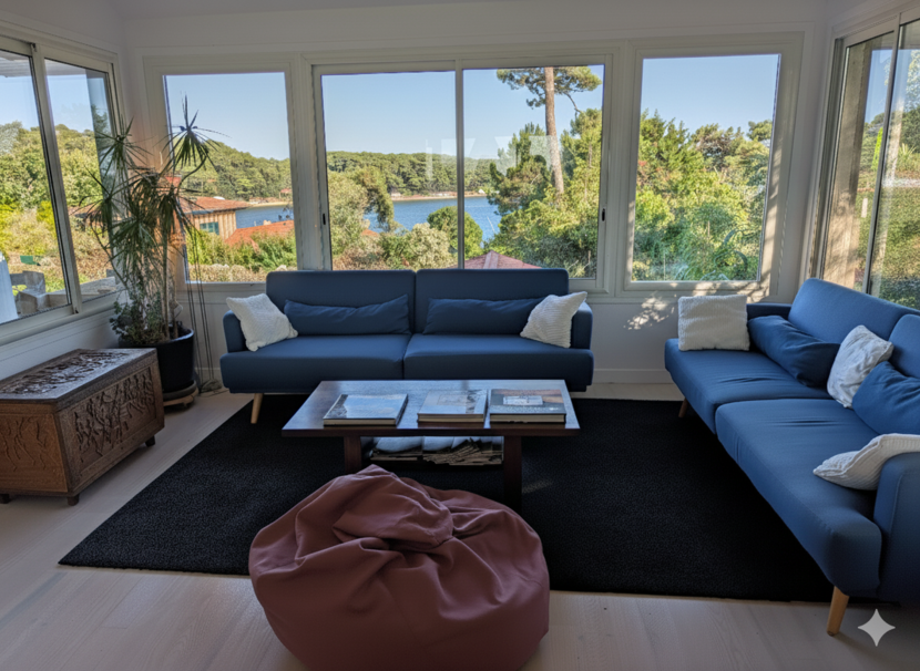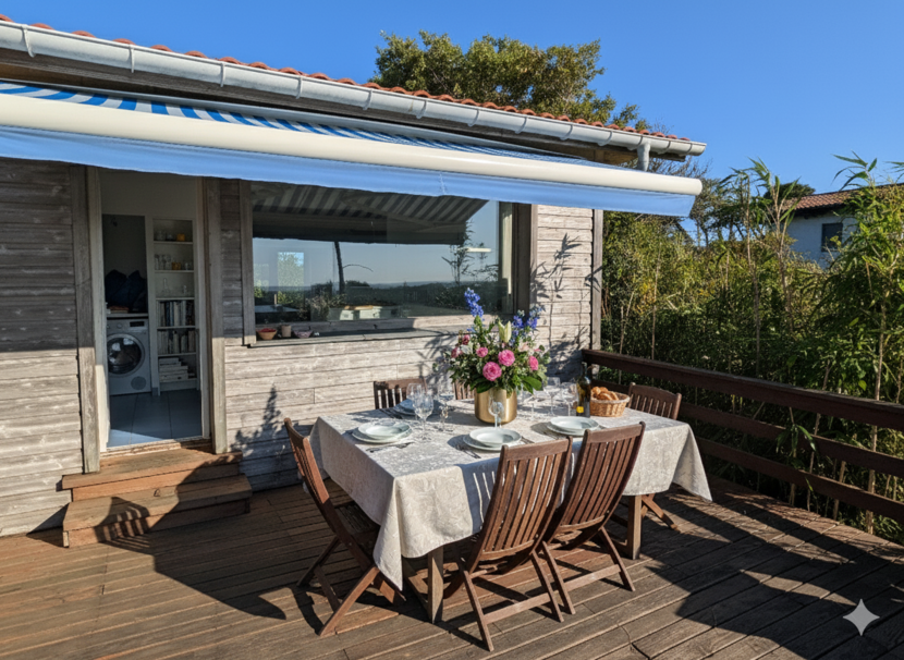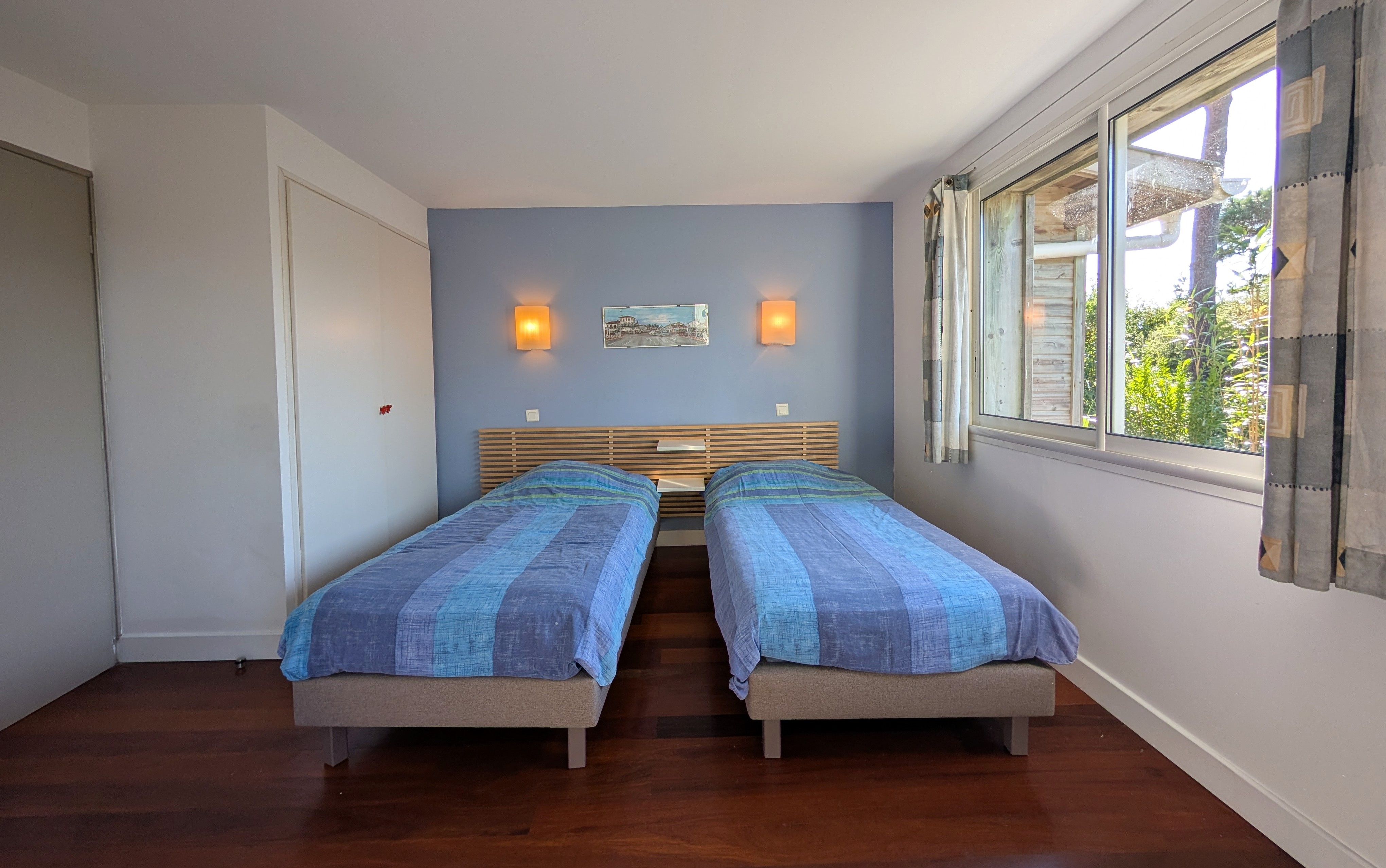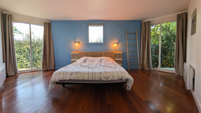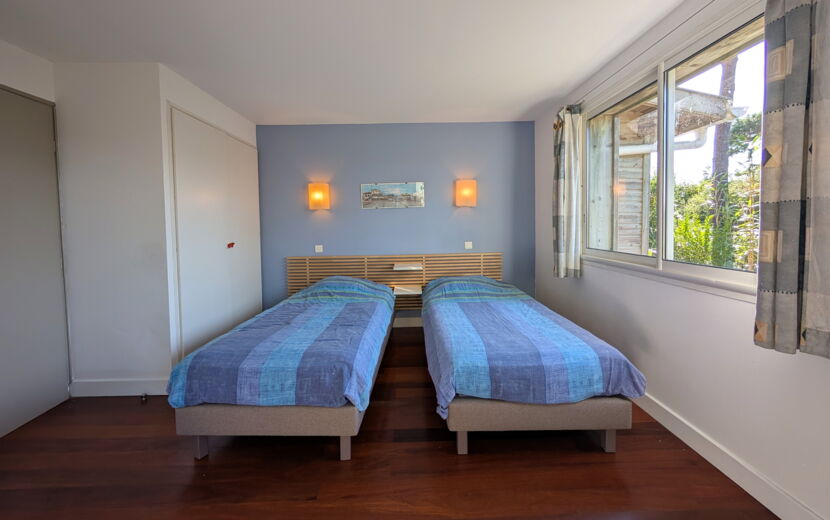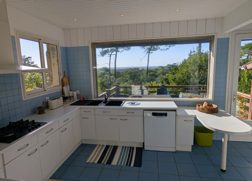 Die besonders großzügige Ferienwohnung H63 mit Meerblick und 150 m2 Wohnfläche befindet sich im Erdgeschoß eines 2-Familien-Hauses, im schönsten Villenviertel von Hossegor in optimaler Lage, nämlich genau zwischen See und Meer.
