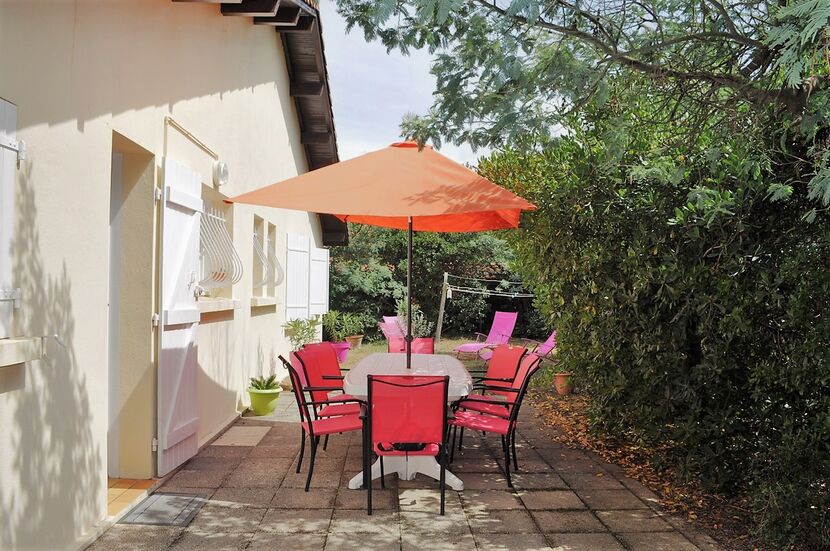 Das gepflegte, ebenerdige Ferienhaus H8 mit ca. 110 m2 Wohnfläche befindet sich auf einem 500 m2 großen, bewachsenen Grundstück in zentraler Lage von Capbreton.