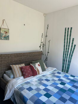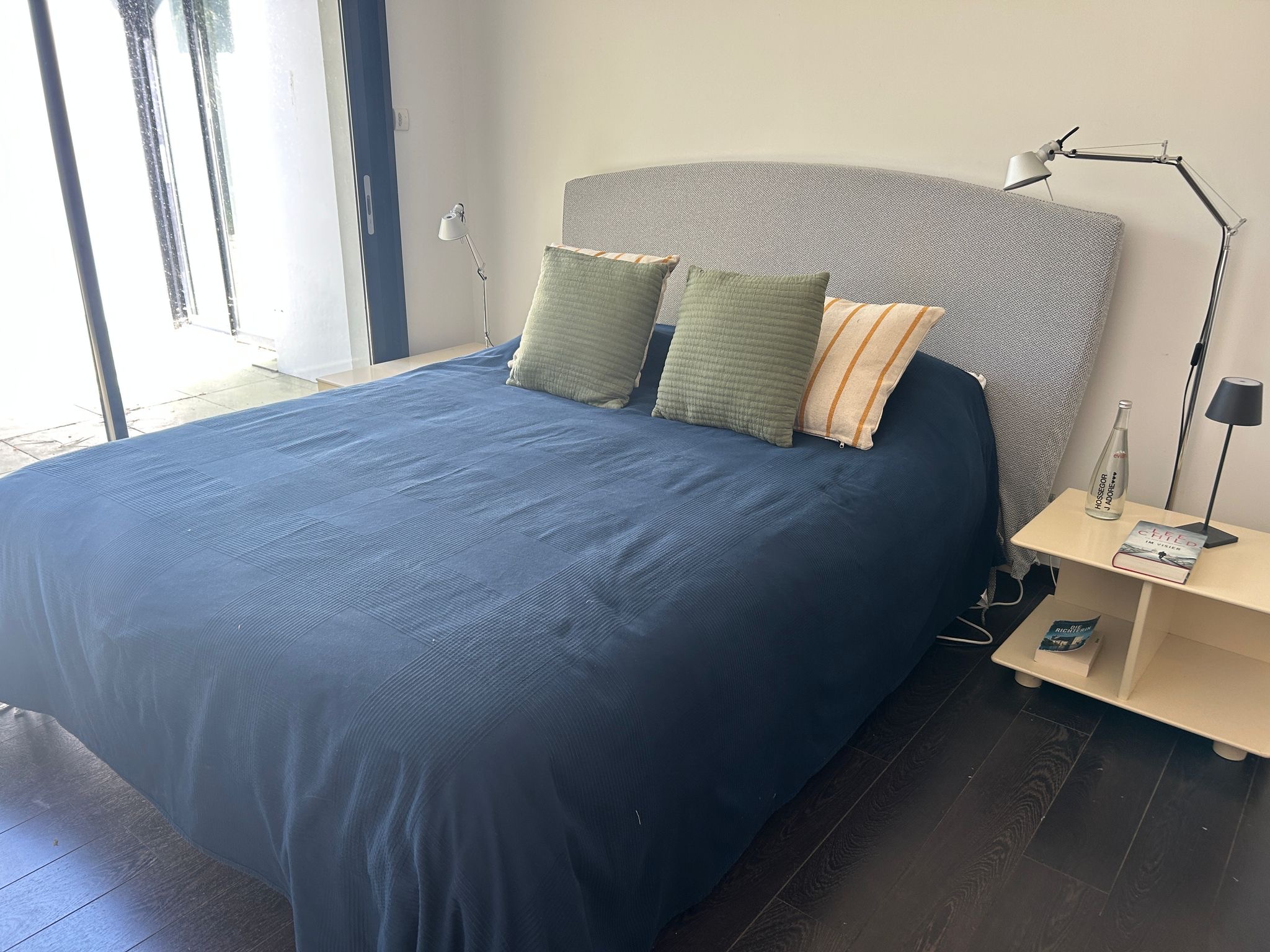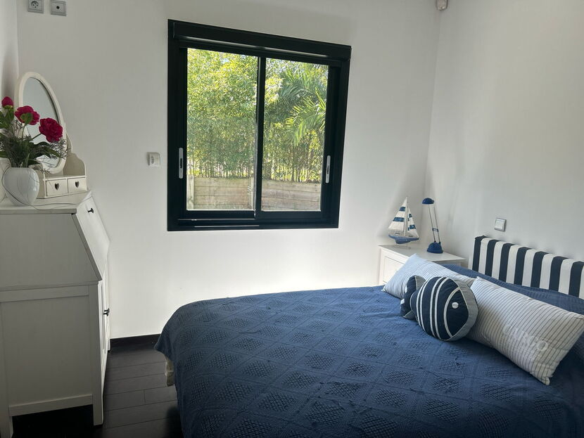 Es stehen insgesamt vier Schlafzimmer zur Verfügung: Zwei Elternschlafzimmer mit jeweils einem Doppelbett von 160 cm, ein Schlafzimmer mit großem französischen Bett von 140 cm und ein weiteres Bett im Durchgangszimmer mit 100 cm Breite. Eines der Elternschlafzimmer verfügt über einen Arbeitstisch. Die Betten sind mit Einzelbettdecken und Kissen ausgestattet. Es besteht die Möglichkeit, Bettwäsche gegen eine geringe Gebühr auszuleihen. Mit Ausnahme des Durchgangszimmer sind alle Schlafzimmer und das Wohnzimmer mit einer Klimaanlage ausgestattet.