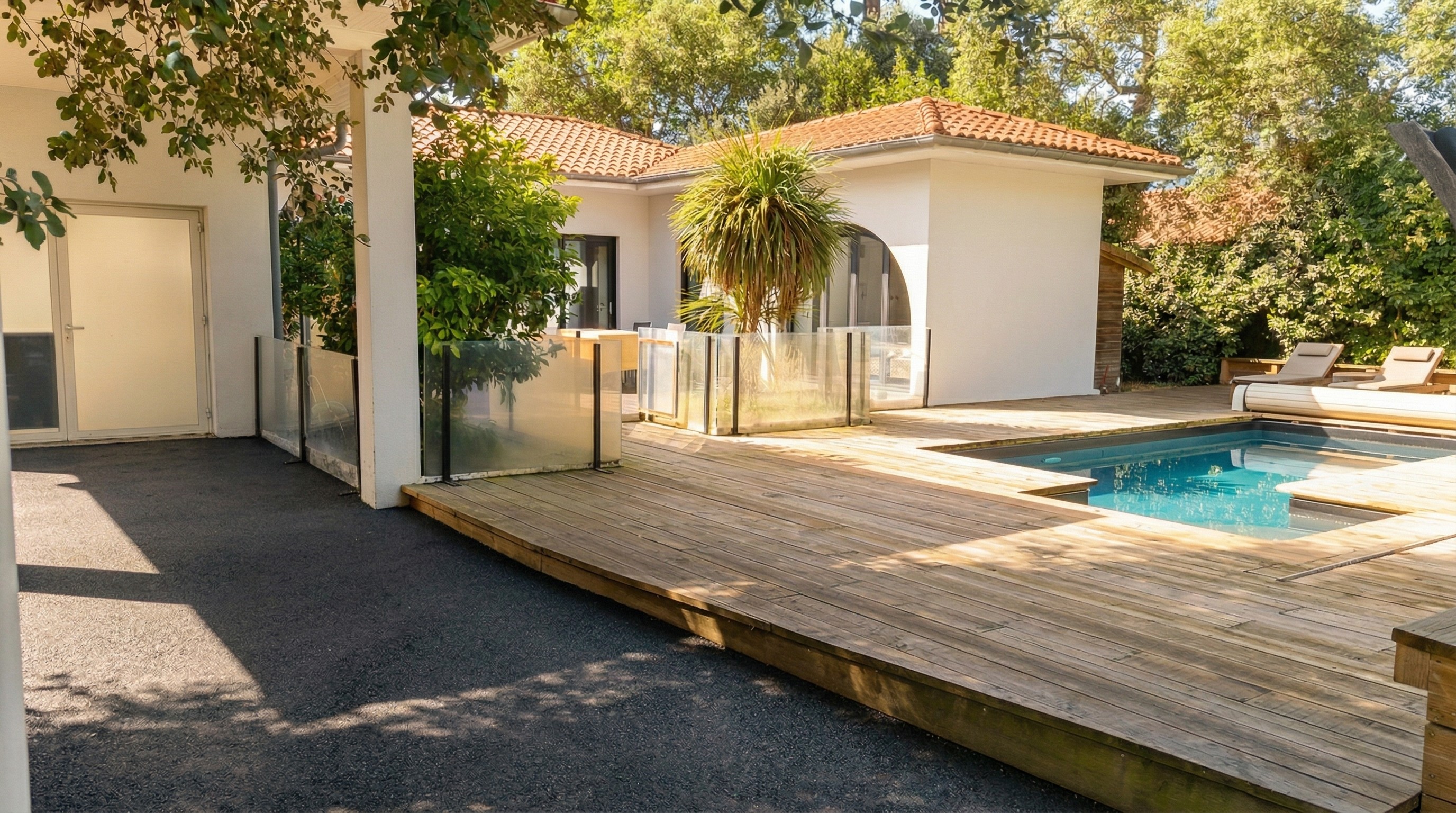 Die Lage des Ferienhauses ist ein weiteres Highlight: Es ist nur wenige Gehminuten vom Salzwassersee mit Ebbe und Flut entfernt, der für nicht nur für Kinder eine ideale Alternative zum Baden im Atlantik darstellt. Auch das gewachsene und attraktive Ortszentrum Hossegors mit zahlreichen Cafés, guten Restaurants und vielen schicken Boutiquen zum Bummeln sind in direkter Nähe, was das Ferienhaus sowohl für Naturliebhaber als auch für diejenigen, die das urbane Leben schätzen, ideal macht. Zum kilometerlangen, breiten, feinsandigen Atlantikstrand sind es ca. 2,3 km.